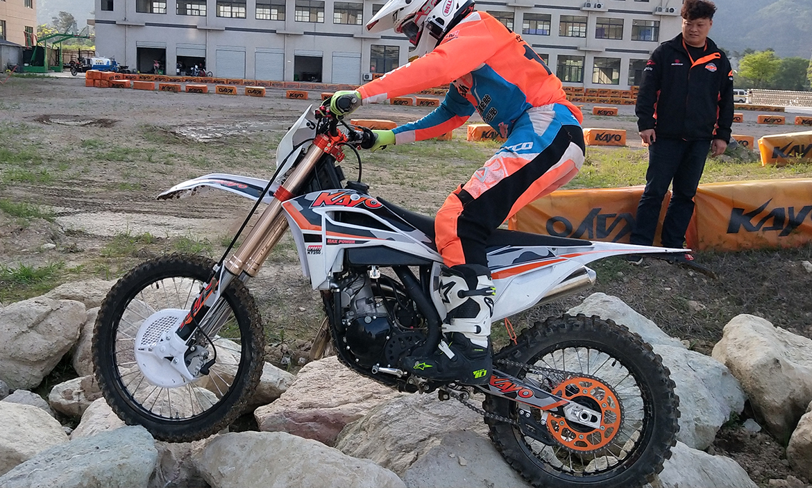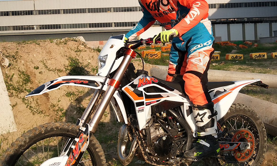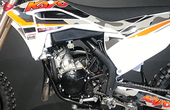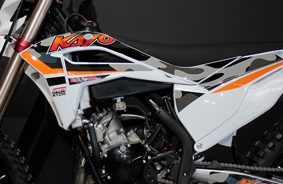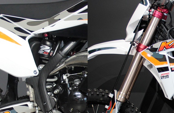 2021款KT250針對國內(nèi)日常林道穿越及林道比賽設(shè)計(jì),車架采用K6R同款特種材質(zhì),重量輕、強(qiáng)度大;搭載最新款兩沖程發(fā)動機(jī),動力更加充沛,質(zhì)量更加可靠;匹配尼比38口徑化油器,相對于同級別產(chǎn)品相比,動力輸出更加暴躁;標(biāo)配CNC360度防摔離合把、剎車把、7系競技鋁圈、競技剎車、DID鏈條等專業(yè)競技車配置,滿足日常林道穿越及林道比賽使用。