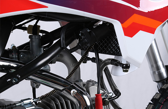 TT150是一款可以進行場地競技練習使用的中型越野車,整車搭載150cc油冷發(fā)動機,動力響應良好;使用華洋新款車架,強度滿足場地騎行使用;專門調校的前后減震器在保證騎行舒適性的同時,大大降低整車坐高。是一款入門級的場地競技越野摩托車。