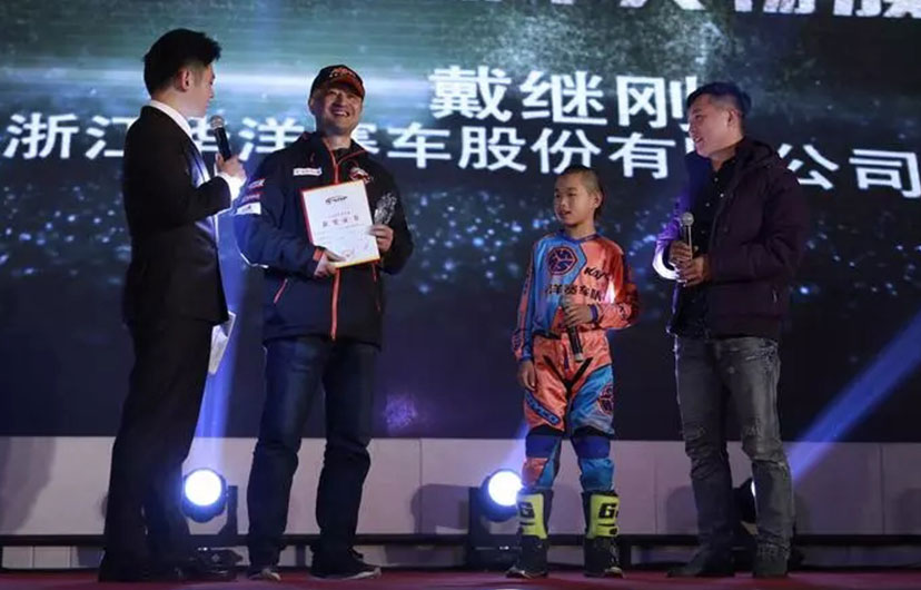 作為中國非公路運動摩托車的創(chuàng)始人之一,華洋賽車董事長戴繼剛的產品創(chuàng)下六個中國第一,終結了國外民用越野車技術長期在中國賽場稱霸的地位,成為國產越野冠軍車。  1.第一款國產兒童越野車、2.第一臺少年組競賽用車、3.第一臺替代日本技術的自主研發(fā)150組國產冠軍賽車、4.第一臺250組大功率NC發(fā)動機冠軍賽車、5.第一臺小型公路競賽用車、6.第一臺電噴技術競賽用車。產品己成為歐洲、美洲、大洋洲、非洲、東南亞等地最有品牌影響力的產品供應商。連續(xù)多年獲得體育總局授予的突出貢獻獎。并且企業(yè)為國家高新技術企業(yè)。在越野摩托車領域,他是中國當之無愧的先行者。